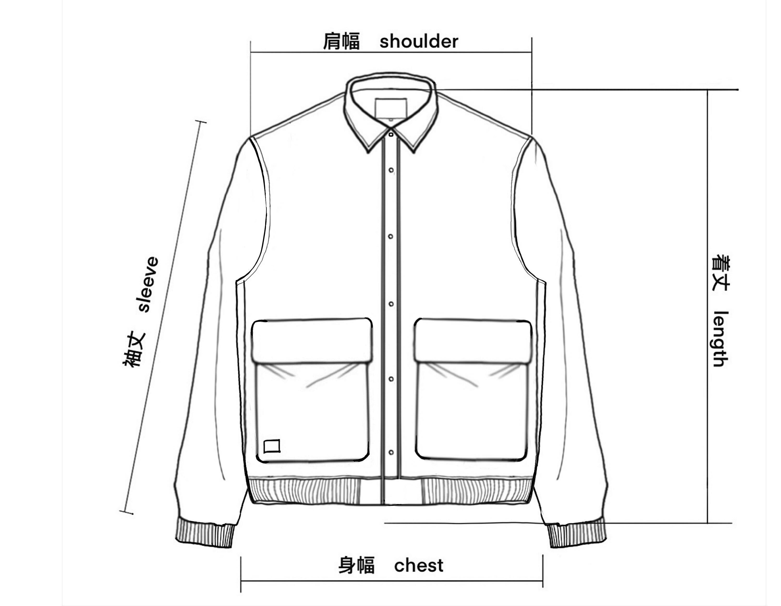 | 着丈 / Length | 身幅 / Chest | 肩幅 / Shoulder | 袖丈 / Sleeve | |