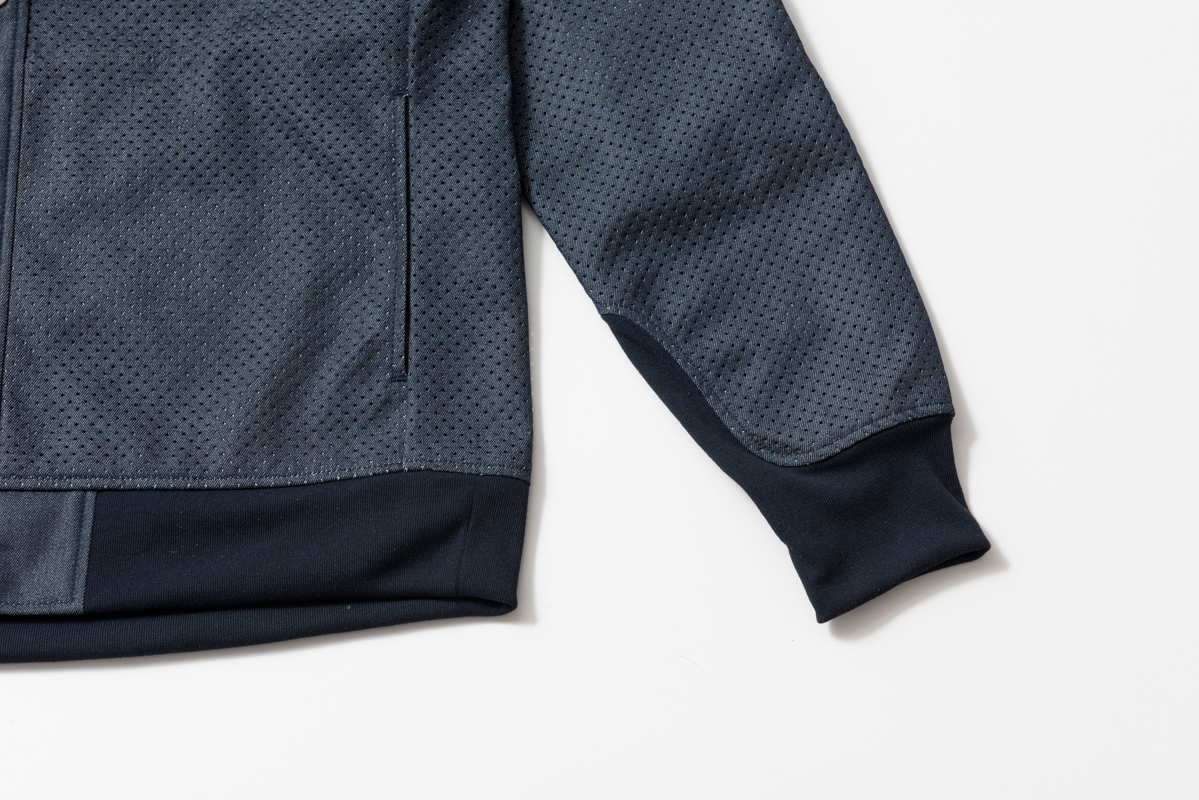 The method of applying perforated mesh to fabric is a rare Japanese processing technique, still uncommon worldwide.