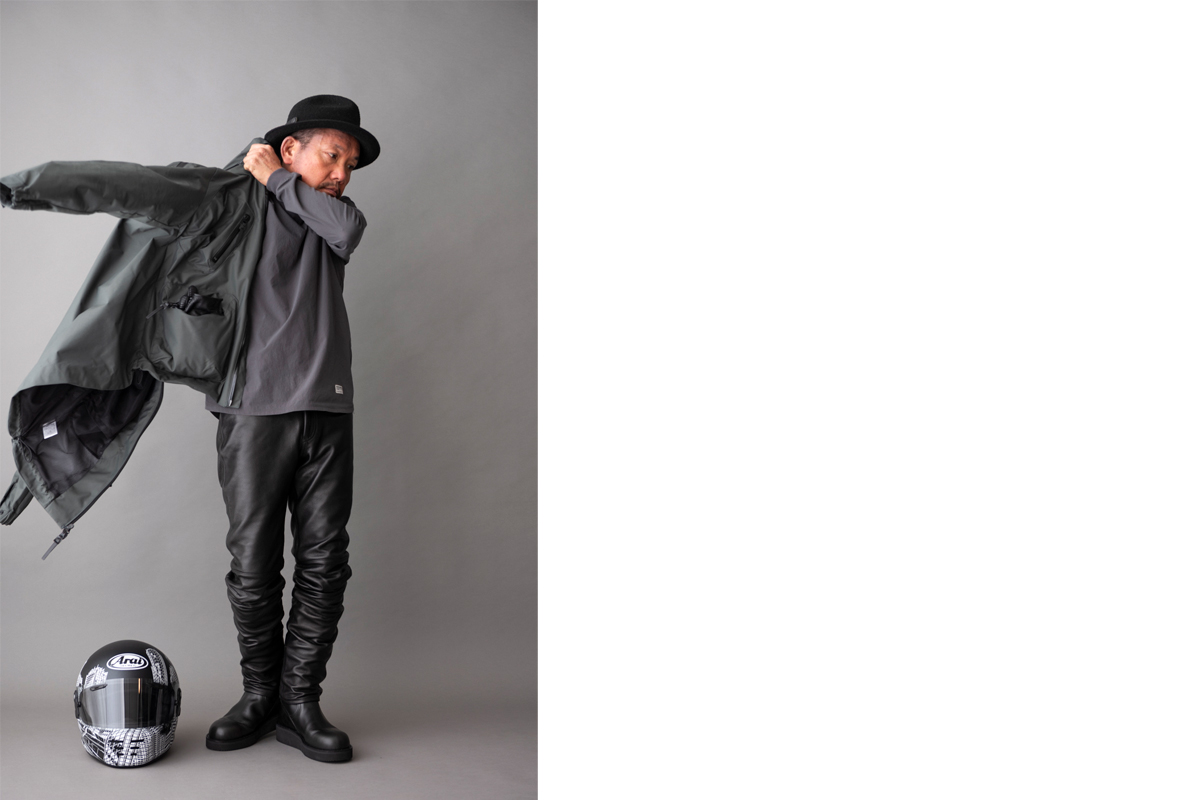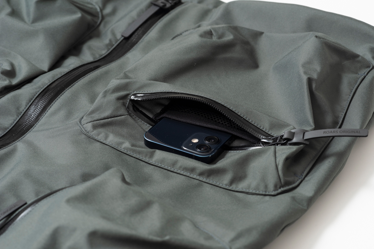 防水の止水ファスナーが機能的でありながらデザインにもなっています。