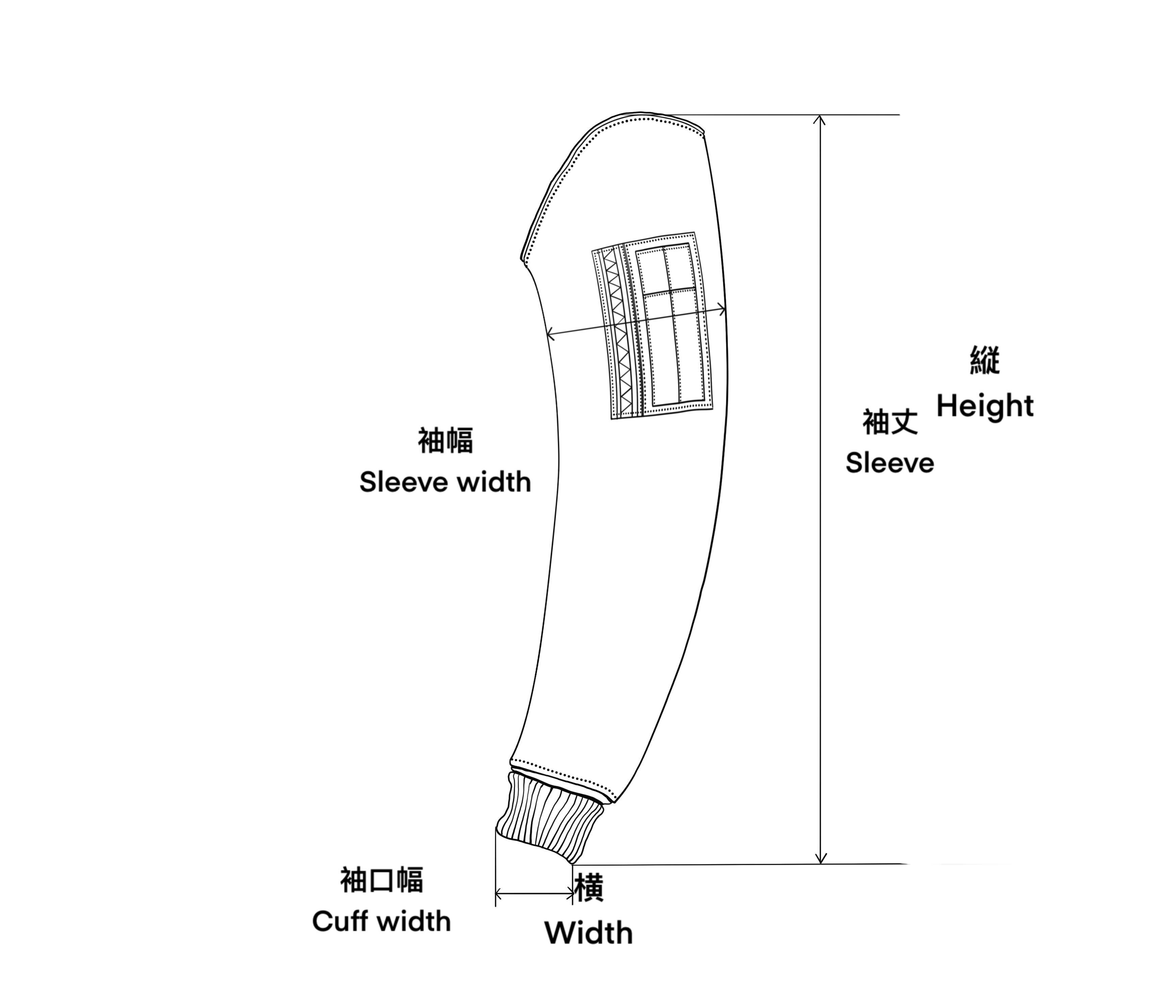 | 袖丈 / Sleeve | 袖幅 / Sleeve width | 袖口幅 / Cuff width | |
