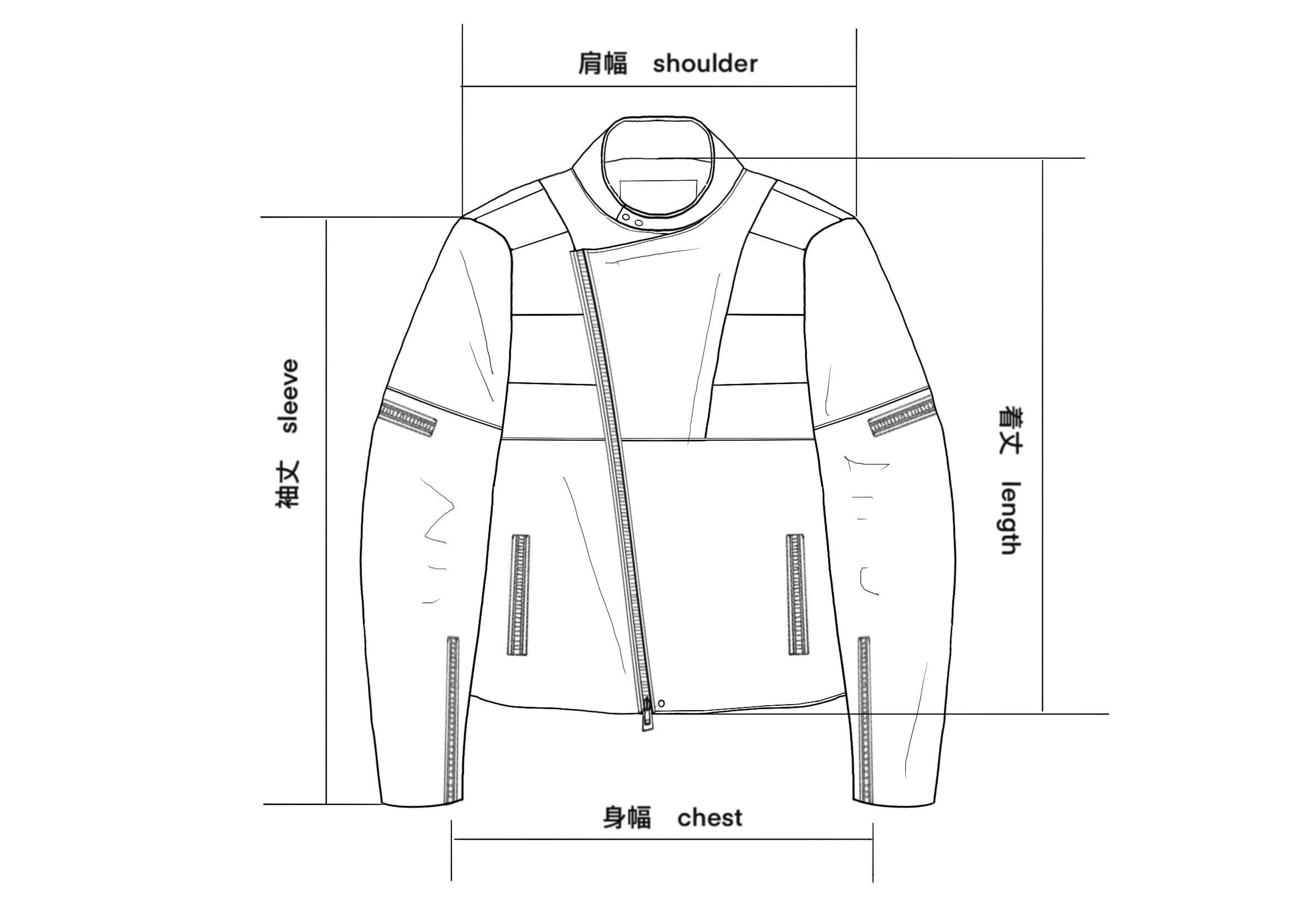 | 着丈 / Length | 身幅 / Chest | 肩幅 / Shoulder | 袖丈 / Sleeve | |