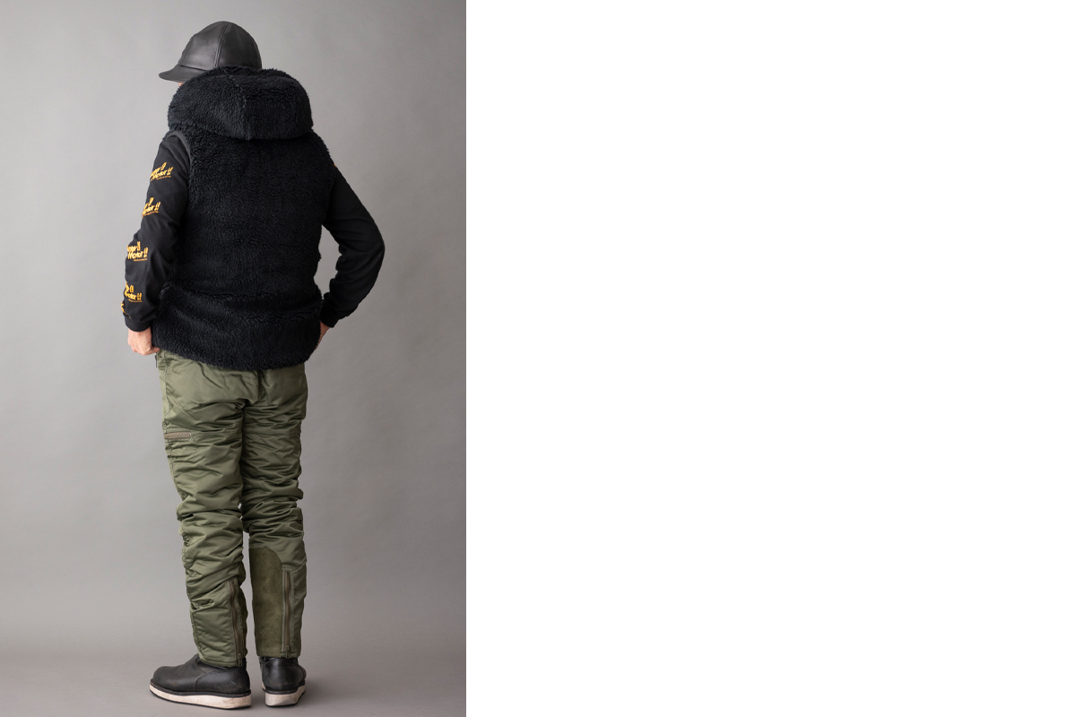 生地はMA-1などでお馴染みのミリタリーナイロンです。厚手ナイロンがとても相性が良いです。