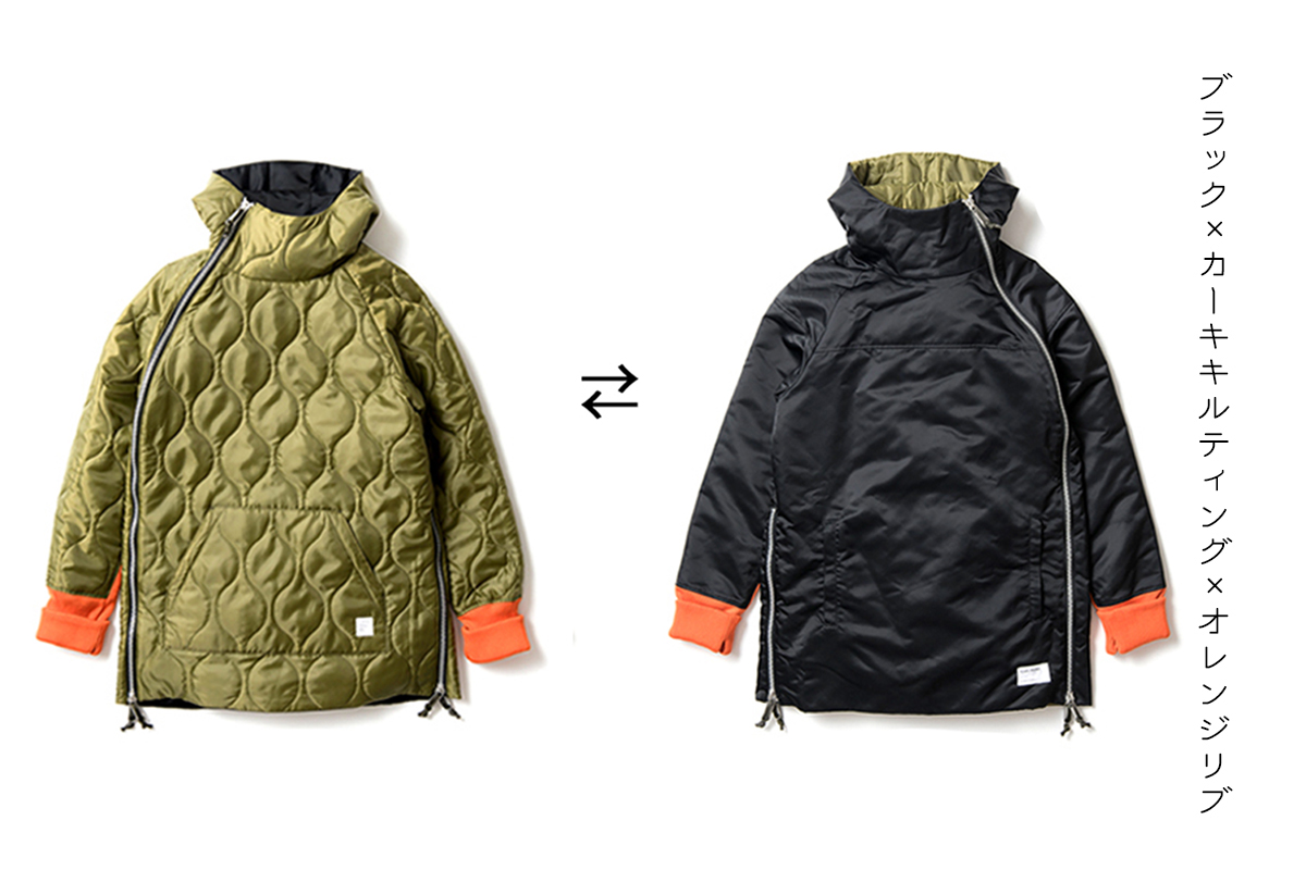 ナイロンで着る場合と、キルティングで着る場合では雰囲気が変わってとても面白いです。