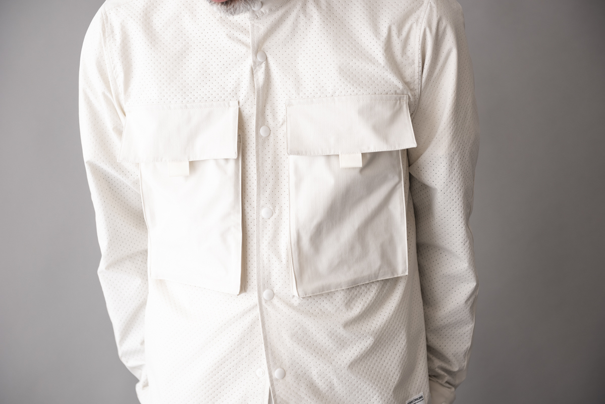 今回ご紹介するシャツはその強度のあるリップストップ生地にパンチングメッシュが加わった魅力的な生地です。