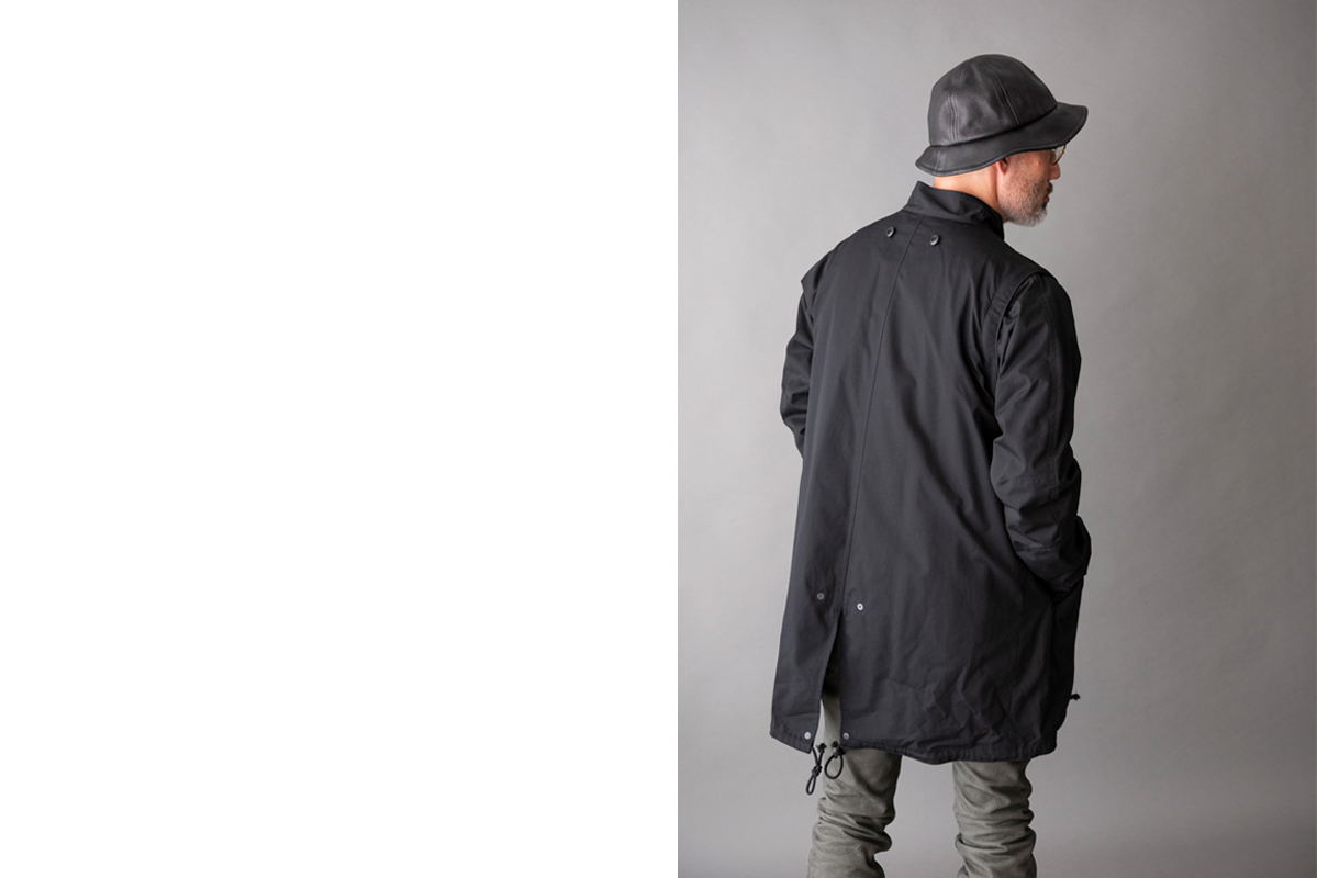 一見、ビンテージのモッズコートに見えて不思議な違和感を感じるところが面白いです。