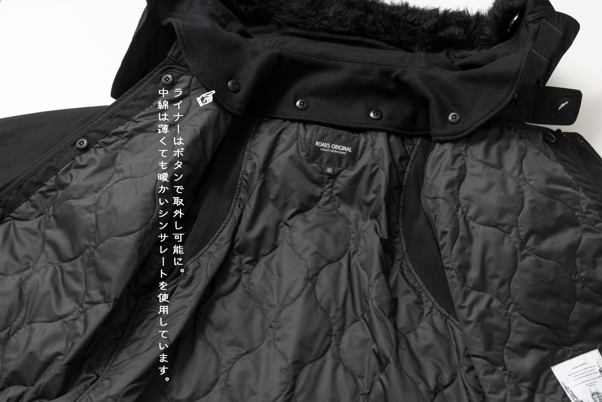 The liner is also modern. Vintage mod coats are so heavy! ROAR'S ORIGINAL deliberately made the liner thin, light, and warm. It's great.