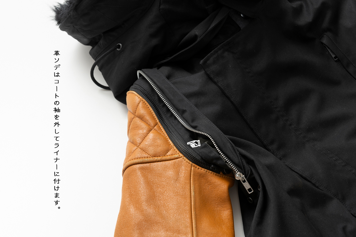 さらにさらに、こちらのモッズコートはなんと「革袖」の装着可能です。